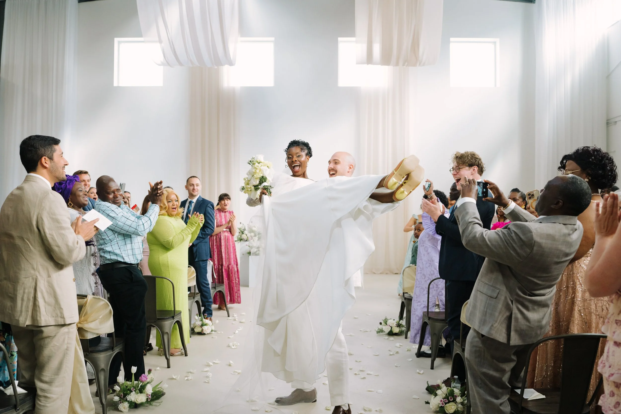 Stunning Ambiance: The Luminare's high ceilings, white walls, and abundant natural light create a captivating setting for your vows.
